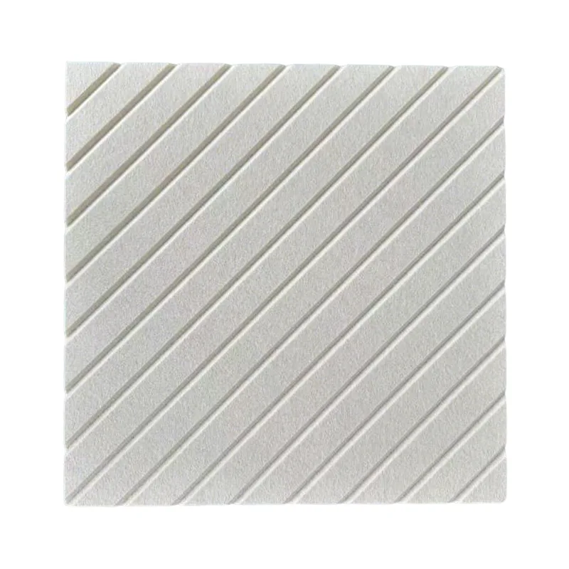 Наши висококвалитетни беж В-резани акустични панели од ПЕТ филца користе 100% полиестерско влакно као основни материјал, са деликатном В-сеченом текстуром на површини, која је мекана и пријатна на додир. Унутрашњост је испуњена финим микропорама које ефикасно хватају звук при удару, спречавајући рефлексију и одјек. Ово не само да решава ехо буку већ и побољшава естетику зида својом разноврсном беж бојом, обезбеђујући да смањење буке није у супротности са вашим стилом декорације – практично и лепо!